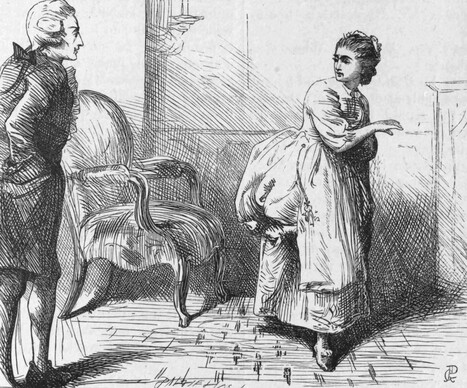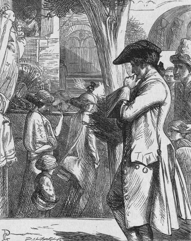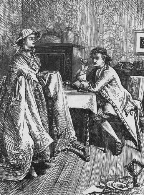 "Distressed, but not discouraged at this treatment, he was at last resolved to find that assistance from love, which he could not have from friendship. Miss Jenny Dismal had a fortune in her own hands, and she had already made all the advances that her sex's modesty would permit. He made his proposal, therefore, with confidence, but soon perceived, 'No bankrupt ever found the fair one kind.' Miss Jenny and Master Billy Galoon were lately fallen deeply in love with each other, and the whole neighbourhood thought it would soon be a match.