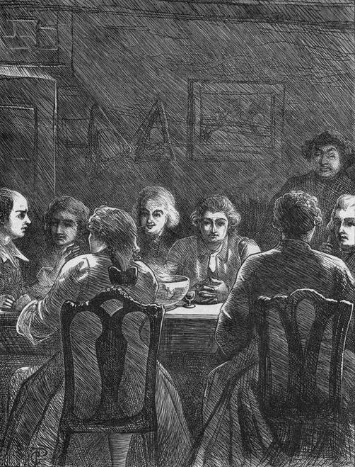It was a day in the poet's life to be marked with a white stone when he made the acquaintance of Johnson. The "great cham of literature," as Smollett called him, understood and appreciated Goldsmith better than did the shallow witlings who laughed at the poet's eccentricities and awkwardness, but had not the sense to discover his genius. And who, better than Goldsmith, could value and respect the great qualities that lay hidden under Johnson's brusque manners and overbearing roughness? Their acquaintance soon ripened into friendship—a friendship that was a joy and solace to Goldsmith until the day of his death. Just at this time Johnson, after many years' hard and unproductive toil had been rewarded with a well-earned pension. Thus lifted above the struggling crowd of his literary brethren, he filled a sort of dictatorial throne among them. In Goldsmith he took quite a peculiar interest, and quickly became what Washington Irving, in his "Life of Goldsmith," happily designates a kind of "growling supervisor of the poet's affairs."