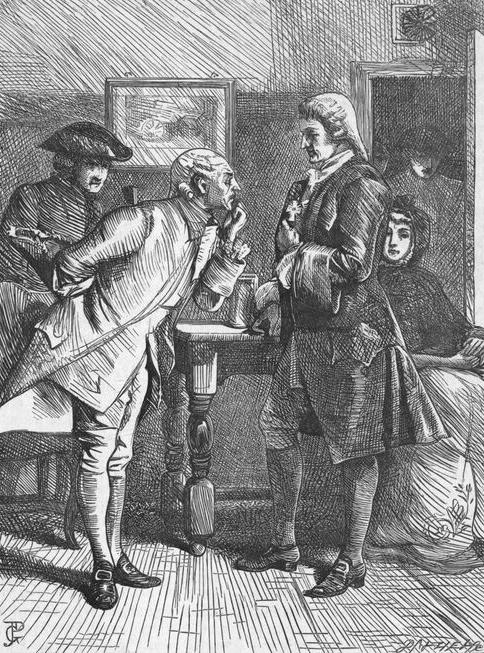 "Not quite disconcerted by this refusal, our adventurer was resolved to apply to another, whom he knew to be the very best friend he had in the world. The gentleman whom he now addressed received his proposal with all the affability that could be expected from generous friendship. 'Let me see,—you want a hundred guineas; and, pray, dear Jack, would not fifty answer?'—'If you have but fifty to spare, sir, I must be contented.'—'Fifty to spare! I do not say that, for I believe I have but twenty about me.'—'Then I must borrow the other thirty from some other friend.'—'And pray,' replied the friend, 'would it not be the best way to borrow the whole money from that other friend, and then one note will serve for all, you know? Lord, Mr. Spindle, make no ceremony with me at any time; you know I'm your friend, when you choose a bit of dinner, or so. You, Tom, see the gentleman down. You won't forget to dine with us now and then? Your very humble servant.'