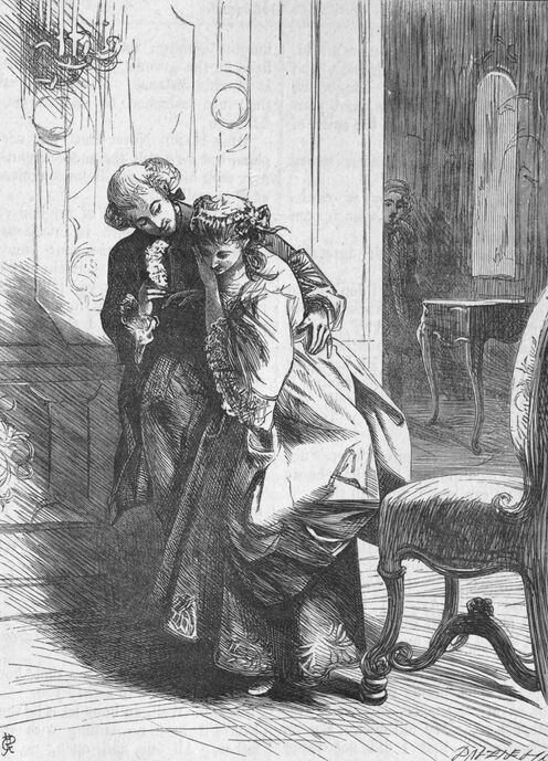 And now our poet resolved to try his powers in a new field—to write a comedy, the remuneration for which should pay off the debts that were fast accumulating round him. But here fresh vexation and new care awaited him. Garrick, the great actor and prosperous manager, to whom he offered the play, took upon himself the office of critic and emendator, authoritatively suggested the entire omission of Lofty, one of the best characters, and, to use an expressive vulgarism, seemed inclined to "burke" the comedy altogether. Goldsmith, smarting under the actor's patronizing criticism, became angry, refused to alter or amend the play, and finally took the manuscript out of Garrick's hands, and transferred it to the rival management of Colman at Covent Garden. But Colman, though he accepted the piece, had little or no hope that it would be a success; and he contrived to impart his own doubts and misgivings to the whole company. The fact was, that, at this period, sentimental comedy, showing men and women as they appear in the pages of novelists of a certain school, but not as they walk and talk in real life, was in the ascendant; and Hugh Kelly—a man with some ingenuity, but without a spark of genius—was the great representative of this school of writing. Now Goldsmith held that a comedy should be comic—that it should, above all things, amuse the spectators by humourous dialogue and startling action; and, in his dramatic creed, the enunciation of moral platitudes had no place. In fact, the lines Goldsmith afterwards wrote concerning Cumberland, Kelly's successor in the Sentimental School of Comedy, might well have been applied to Kelly himself: