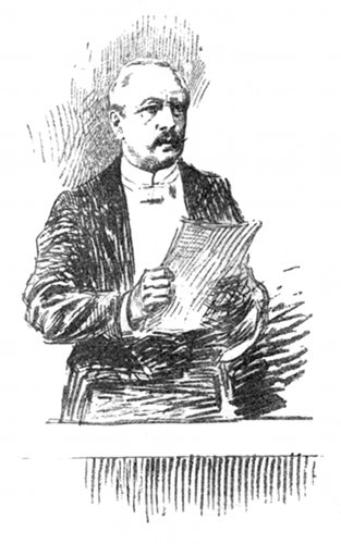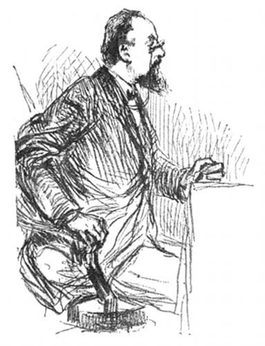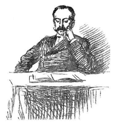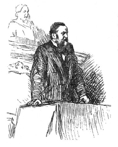Tre giorni appresso risaliva quella cattedra un altro bell'ingegno, il Molmenti. Un artista che vuol essere aristocratico succedeva al più democratico di tutti i conferenzieri; alla naturalezza del fiorentino all'antica, seguiva la raffinata eleganza d'un cortesan veneziano. [xxiv] L'onorevole Molmenti non se l'abbia a male: il paragone non ha nulla d'odioso per lui; tanto è vero che posson farlo i lettori, raffrontando i ritratti dei due dicitori dovuti alla elegante matita del Corcos.