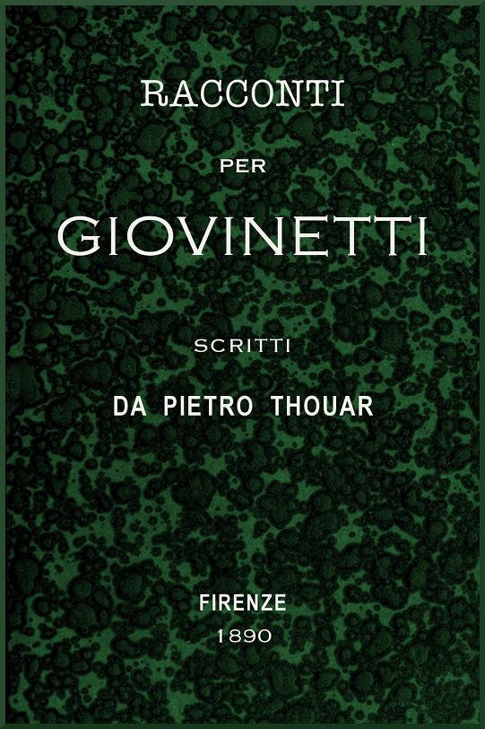 Proseguendo la nostra collezione delle cose del Thouar, in tanto favore che hanno ricevuto e che ricevono, sarebbe superfluo raccomandare questo volumetto di Racconti per Giovinetti. Ci corre obbligo però di notare che a questa edizione de' Racconti manca quello che s'intitola Un amico del Parini, comecchè sembrasse giovevole porlo nella raccolta dei Racconti Storici, che fa parte della collezione.