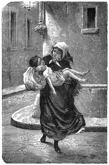 Erano cinque o sei giorni ch'io non la vedeva, quando una mattina, chiamato per assistere un povero orfanello moribondo, ci trovo la Luisa, venuta in ajuto della vecchia zia del fanciullo. «Luisa mia» le dissi: «mi consolo di vederti levata; ma non vorrei che fosse troppo rischio mettersi così subito a faticare.» — «Ma io sto bene» rispose con tutto il suo spirito. «Oh! la non creda che fosse un male serio: io aveva bisogno di riposo, e tutti lesti. Che vuol ella? la povera zia qui la fa quel che può; ma è sola, e tanto vecchia....» — «Bene via; ma ora basta. Ritorna a casa, e riguardati. Ora ci sto io.» — «Sì signore;» e obbedì, lasciando un bacio a quella creatura per la quale ormai ogni umana assistenza era inutile. Nell'accomiatarla [38] la condussi in disparte sull'uscio, e le ripetei l'offerta di qualche soccorso, che dopo tante disgrazie io credeva più opportuno di prima; ed ella, secondo il solito: «La ringrazio di tutto cuore» rispose; «per ora la Provvidenza non manca; quando posso lavorare non ho paura. Queste» accennando la vecchierella «queste hanno bisogno di lei. Pensi a loro, e Dio le ne renda merito...»