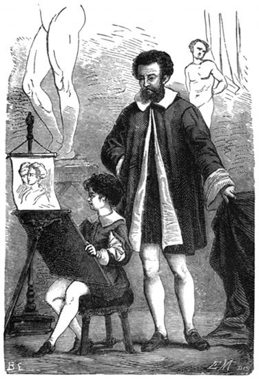 Essi a fatica si staccarono dalle sue ginocchia; ma poi balzando dalla gioia volarono in traccia della madre. Lanfranco ristette a guardarli, considerando come i casi della fortuna sogliano travagliare i grandi ingegni sul principio della loro carriera.