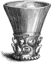 146) Zur Vervollständigung unserer Fundchronik machen wir noch nachträglich auf die uns erst jetzt zugekommene Nr. 3 des Anzeigers für schweizerische Alterthumskunde in Zürich aufmerksam, worin der im Juni d. J. gemachte Fund eines Grabes bei Füllinsdorf, oberhalb Augst (Baselland), gemeldet wird, das ein weibl. Skelett mit einem Bronzeringe mit Gemme am Finger, 23 schöne, fein getriebene Goldplättchen, ein silbernes Büchschen, ein ziemlich großes Thränenfläschchen, sowie mehrere Münzen der Faustina enthielt.