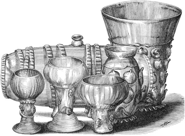 18) Wenzel Jamitzers Entwürfe zu Prachtgefäßen in Silber und Gold. Photolithographische Nachbildungen von Kantenseter und Haas in Nürnberg, herausgegeben von R. Bergau. Berlin, Paul Bette. 4. 7 Stn. u. 70 Tafeln.