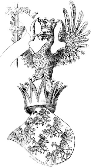 Ein Theil der dort angeführten Gaben wurde als besondere Stiftung zur Vermehrung des Ankaufsfondes der Sammlungen bestimmt und demgemäß verwendet. Auch war die Summe nicht unbeträchtlich, welche aus dem allgemeinen Etat des Museums für die Sammlungen aufgewendet werden konnte, so daß um so beträchtlichere Mehrung sich ergab, als auch eine ganze Reihe von Geschenken hinzugetreten war. An der Spitze derselben stehen drei Glasgemälde, treffliche Copien der Wappen von Brandenburg, Nürnberg und Hohenzollern aus der Kirche zu Werben, welche Se. kaiserl. und kgl. Hoheit, der Kronprinz des deutschen Reiches und von Preußen am Vermählungstage höchstseiner Tochter dem Museum zum Geschenke gemacht hat.