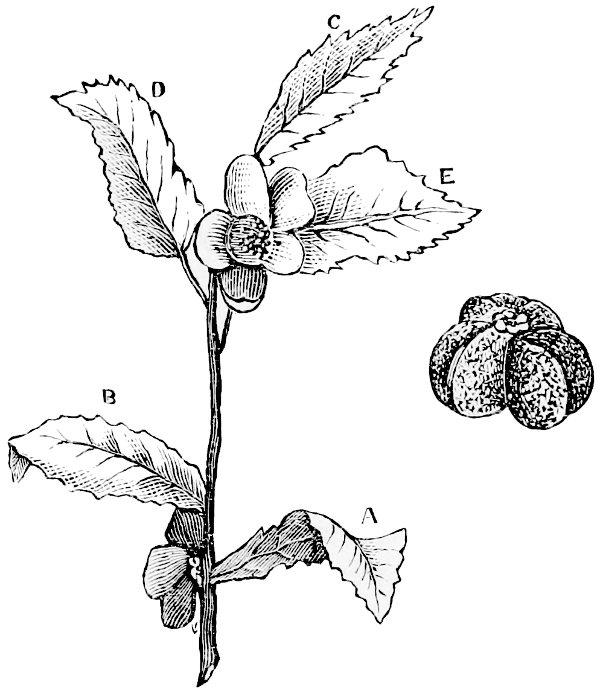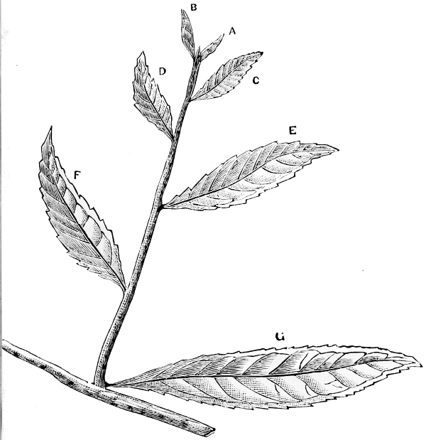 Darjeeling—Is a hybrid variety, produced from a cross between the China and India Tea plants and partakes somewhat of the characteristics of both. But, while blacker in leaf, it is not on an average as finely[31] made, and while round and full in body is not as pungent or flavory in the infusion.