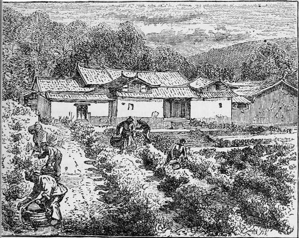 Congou Teas are grown principally in the Bohea hills in China, and are known to trade in this country as English Breakfast Teas. They are divided into Kaisow or Red-leaf and Moning or Black-leaf Teas, and are a[17] distinct variety differing in color, liquor and flavor from the Oolong sorts.