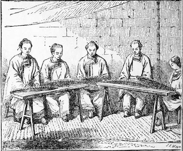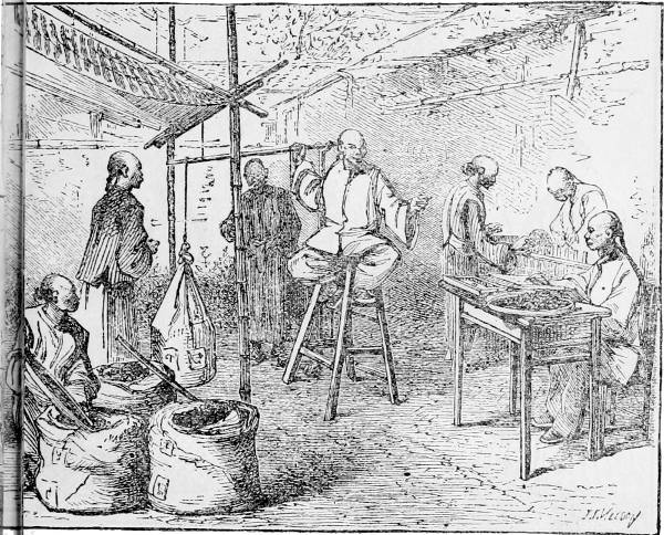 Twankay—Or “Hyson-skin,” is composed chiefly of the largest and oldest leaves of the foregoing varieties that cannot, owing to their coarse or broken condition, be rolled or converted into the former makes. It is a large,[23] loose and flat-leaf tea, varying in color, liquor and flavor, according to the grades from which it is separated.