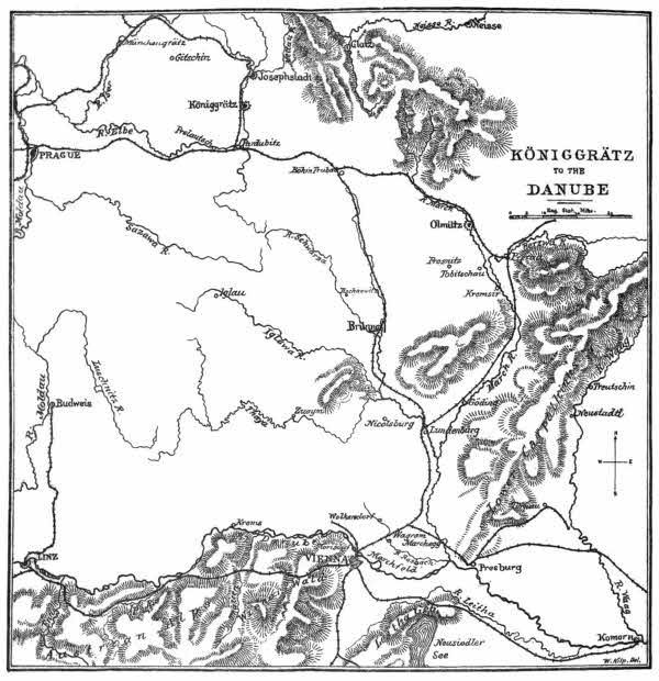 APPENDIX I. THE PRUSSIAN ADVANCE FROM KÖNIGGRÄTZ TO THE DANUBE.