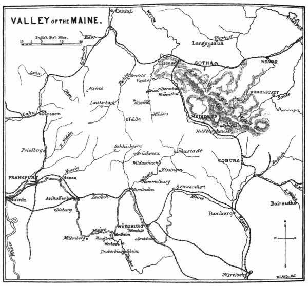 [25] Rossbrünn is not marked on the map. It is about 7 miles due west of Würzburg.