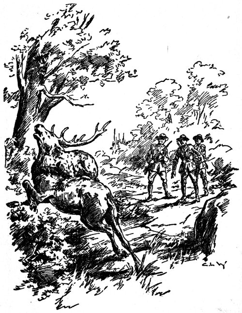 There was a crashing sound heard close by, a swishing of the undergrowth, and then a bounding object flashed into view, which took on the shape of a two-year-old buck, leaping frantically over logs and bushes, as though possessed. Upon his neck and shoulders the boys glimpsed a strange, mysterious gray hunch!