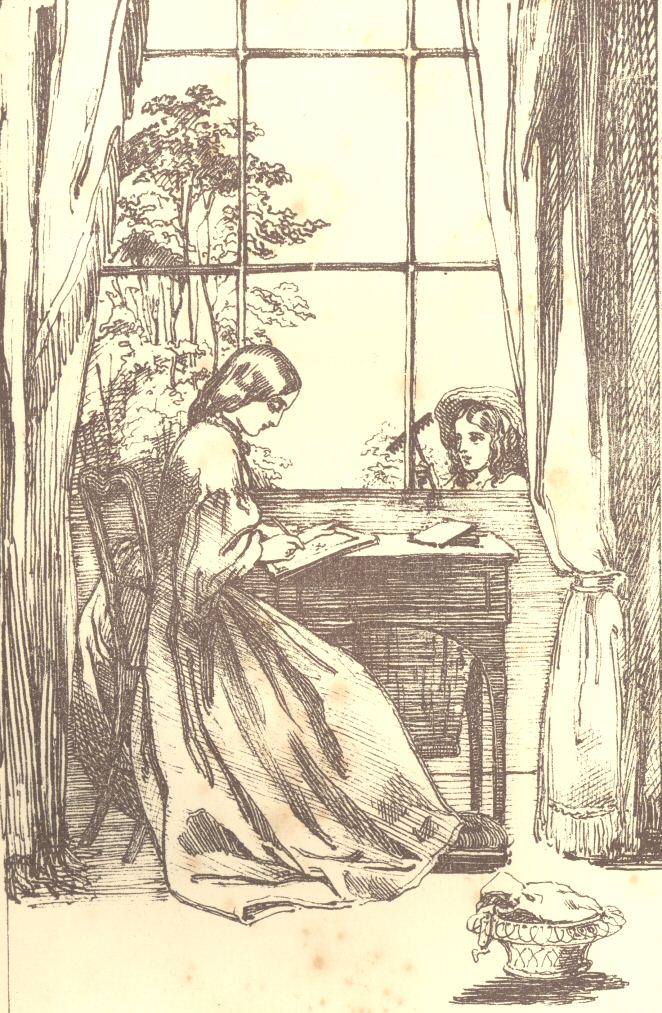 After their departure, Aunt Judy requested the rest not to talk, and a complete silence ensued, during which one or two of the youngest evidently concluded that she was composing her story, for they stared at her with all their might, as if to discover how she did it.