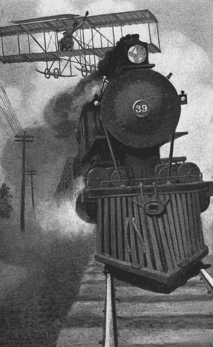295Harvey Hamilton proposed to carry Grace in his aeroplane to Philadelphia, confident that by starting early the next morning he could reach her home by noon, but his friend showed him the folly of anything of that nature. She was unaccustomed to riding in the air, and an accident was more than likely. Moreover, her father was due in Chesterton on the afternoon of the morrow.