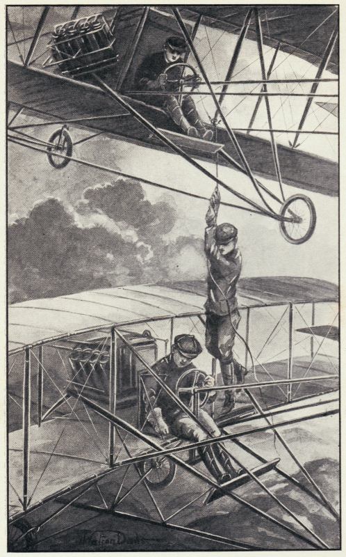 Ben inspected the approaching flying machines through the glass and declared that Mr. Havens and Carl were on board the Ann, and that Dick Sherman and two unknown men were on the strange machine.