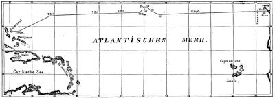 [1591] [It will be remembered that the original Bull of 1493 fixed the meridian 100 leagues (say 400 miles) west of the Azores or Cape De Verde Islands, supposing them to lie north and south of each other; whereas the limit in force after June 7, 1494, was 370 leagues (say 1,080 miles) west of the Azores, since Portugal, complaining of the first limit, had negotiated with Spain for a new limit, the Pope assenting; and this final limit was confirmed by a convention at Tordesillas at the date above given. Cf. Popellinière, Les trois mondes, Paris, 1582; Baronius, Annales (ed. by Brovius, Rome), vol. xix.; Solorzano, Politica Indiana.—Ed.]