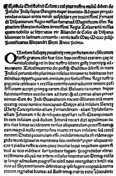 Muñoz, who was born in 1745, was commissioned in 1779 by the King with authority[8] to search archives, public and family, and to write and publish a Historia[iii] del nuevo mundo. Of this work only a single volume,[9] bringing the story down to 1500, was completed, and it was issued in 1793. Muñoz gave in its preface a critical review of the sources of his subject. In the prosecution of his labor he formed a collection of documents, which after his death was scattered; but parts of it were, in 1827, in the possession of Don Antonio de Uguina,[10] and later of Ternaux. The Spanish Government exerted itself to reassemble the fragments of this collection, which is now, in great part, in the Academy of History at Madrid,[11] where it has been increased by other manuscripts from the archives at Seville. Other portions are lodged, however, in ministerial offices, and the most interesting are noted by Harrisse in his Christophe Colomb.[12] A paper by Mr. J. Carson Brevoort on Muñoz and his manuscripts is in the American Bibliopolist (vol. viii. p. 21), February, 1876.[13] An English translation of Muñoz’s single volume appeared in 1797, with notes, mostly translated from the German version by Sprengel, published in 1795. Rich had a manuscript copy made of all that Muñoz wrote of his second volume (never printed), and this copy is noted in the Brinley Catalogue, no. 47.[14]