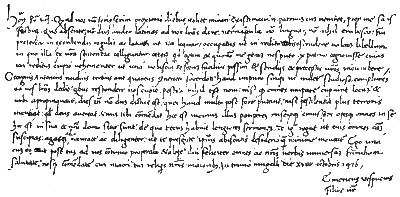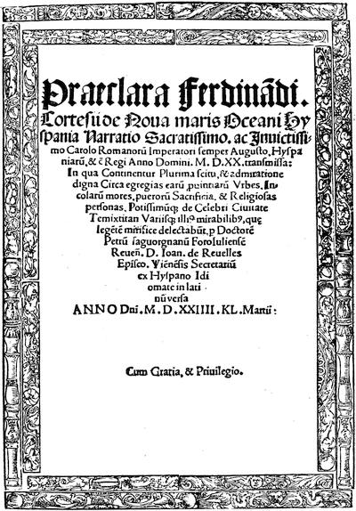 [1622] All three of these editions are in the Lenox Library, and the first two are in the Carter-Brown. Cf. Harrisse, Bibl. Amer. Vet., nos. 122, 123, 124. Leclerc priced the Cologne edition at 500 francs, and the Rome (1523) at 350. Bibl. Amer. Vet. nos. 376, 377. Dufossé (nos. 11,003, 12,348) puts the Cologne edition at 500 francs, and again (no. 14,892) at 380. The Court Catalogue (Paris, 1884) shows the Cologne edition (no. 220) and the Rome (1524) edition (no. 221). Brunet is in error in calling the Roman edition the earliest. A Cologne copy in the Murphy sale (1884) brought $75; Catalogue, no. 2,519. One in F. S. Ellis’s Catalogue (1884), no. 188, is priced at £42. Cf. Sabin, xi. 47,038-47,042; Carter-Brown, no. 75; Graesse, iv. 451; Ternaux, no. 129. It was also inserted in Latin in the Novus Orbis of 1537 (p. 585), and of 1555 (p. 524), and in Johannes Bœmus’s Omnium gentium mores, etc., Antwerp, 1542; in Italian in Ramusio (i. 347); in Spanish, in Navarrete (iv. 249, dated October 5, and not 24). The narrative in Hulsius (no. xxvi.) is taken from Ortelius and Chauveton. Cf. Panzer, vol. vi., no. 375; Stevens, Nuggets, no. 1,868; Bibliotheca Grenvilliana, p. 454; Ternaux, nos. 29, 30; Graesse, iv. 451, 452; Bibliotheca Heberiana, i. 4,451; ii. 3,687; vi. 2,331; vii. 4,123; Leclerc, no. 69; Bibl. Amer. Vet. Add., no. 136.