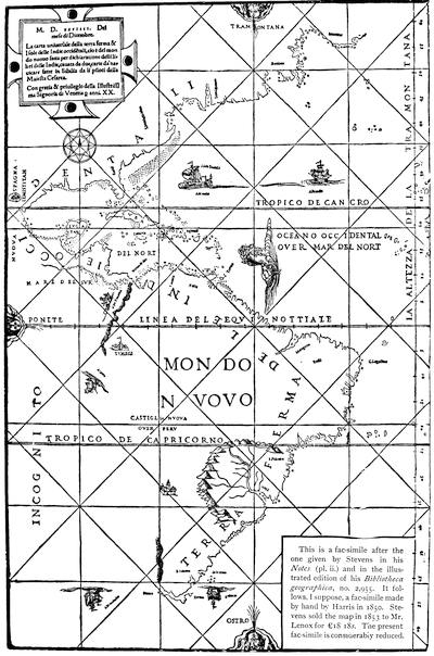 Illustrations: Title of the Jehan Lambert edition of the Mundus Novus, 157; first page of Vorsterman’s Mundus Novus, 158; Title of De Ora Antarctica, 159; title of Von der neu gefunden Region, 160; Fac-simile of its first page, 161; Ptolemy’s World, 165; Title of the Cosmographiæ Introductio, 167; Fac-simile of its reference to the name of America, 168; the Lenox Globe (American parts), 170; Title of the 1509 edition of the Cosmographiæ Introductio, 171; title of the Globus Mundi, 172; Map of Laurentius Frisius in the Ptolemy of 1522, 175; American part of the Mercator Map of 1541, 177; Portrait of Apianus, 179. | |