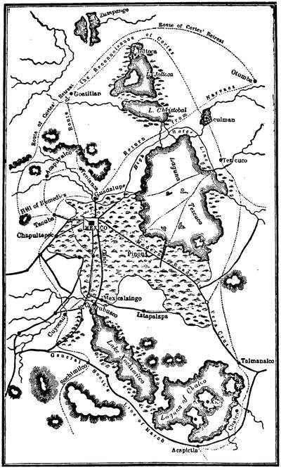 Illustrations: Velasquez, 350; Cannon of Cortés’ time, 352; Helps’s Map of Cortés’ Voyage, 353; Cortés and his Arms, 354; Gabriel Lasso de la Vega, 355; Cortés, 357; Map of the March of Cortés, 358; Cortés, 360; Montezuma, 361, 363; Map of Mexico before the Conquest, 364; Pedro de Alvarado, 366; his Autograph, 367; Helps’s Map of the Mexican Valley, 369; Tree of Triste Noche, 370; Charles V., 371, 373; his Autograph, 372; Wilson’s Map of the Mexican Valley, 374; Jourdanet’s Map of the Valley, colored, 375; Mexico under the Conquerors, 377; Mexico according to Ramusio, 379; Cortés in Jovius, 381; his Autograph, 381; Map of Guatemala and Honduras, 384; Autograph of Sandoval, 387; his Portrait, 388; Cortés after Herrera, 389; his Armor, 390; Autograph of Fuenleal, 391; Map of Mexico after Herrera, 392; Acapulco, 394; Full-length Portrait of Cortés, 395; Likeness on a Medal, 396. | |