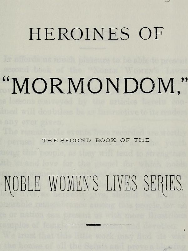 The remarkable events here recorded are worthy of perusal and remembrance by all the youth among this people, as they will tend to strengthen faith in and love for the gospel for which noble men and women have suffered so much. The names, too, of such heroines as these, the sketches of whose lives we herewith give, should be held in honorable remembrance among this people, for no age or nation can present us with more illustrious examples of female faith, heroism and devotion.