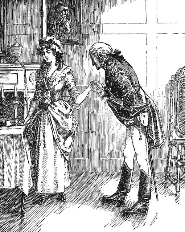 “Mademoiselle,” I cried, more passionately, perhaps, than was fitting, “do not misunderstand. The confiscation does not apply at once, of course, and you are still absolute mistress here. If your brother be proved innocent, the decree of confiscation may be revoked. So it will now be held in suspension. You will, I am sure, permit me to go through the form of visiting your house, to convince me, as the Governor’s emissary, that Monsieur le Fevre is not there. Then I will return to the village and see to it that my men shall cause you no annoyance or embarrassment. I dare not ask you to pity me for the duty that has been put upon me.”