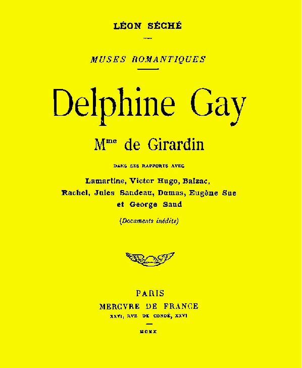 Title: Delphine Gay, Mme de Girardin, dans ses rapports avec Lamartine, Victor Hugo, Balzac, Rachel, Jules Sandeau, Dumas, Eugène Sue et George Sand (documents inédits)