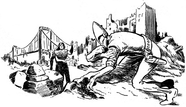 Scrabbling fearfully in the dust for his hammer, Roddie paused suddenly. This girl—whatever that was—seemed to think him one of her own kind. There was a chance, not much, but worth taking, to turn delay to advantage. Maybe he could learn something of value before he killed her. That would make the soldiers accept him!