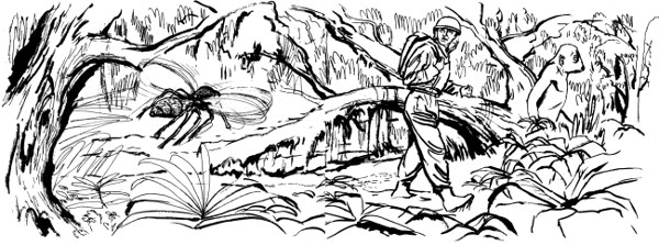 Lanceford eyed the insect distastefully as he explored his jacket for repellent and applied the smelly stuff liberally to his face and neck. It wouldn't do much good. In an hour, his sweat would remove whatever the rain missed—but for that time, it should discourage the sith. As far as permanent discouraging went, the repellent was useless. Once one of those eight-legged horrors checked you off, there were only two possible endings to the affair—either you were bitten or you killed the critter.