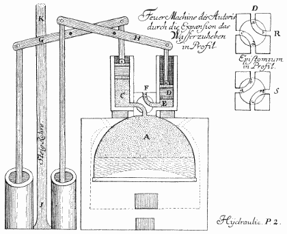 [S. 4] Nicht minder aber bedurfte es der wissenschaftlichen Vertiefung der Kenntnis des Wesens des Druckes der Gase und der besonderen Eigenschaften des Wasserdampfes. So sind denn mit der Entwicklung der Dampfmaschine auf das engste die Namen Galileo Galilei, Torricelli, Otto von Guericke, van Helmont, Kratzenstein, Hamberger usw. verknüpft. Aus dem Gesagten erklärt sich denn auch zwanglos die Tatsache, daß die ersten Versuche der Ausnutzung der Dampfkraft sich im Rahmen des tastenden Versuches vollzogen und erst allmählich, entsprechend dem Fortschreiten der induktiven Wissenschaften, festen Boden gewannen.
