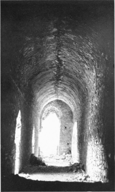 Scarcely more correct as to architectural features is Tavernier’s allusion to Ukhaiḍir. There can, however, be no doubt that it is to Ukhaiḍir that he refers, by reason of the geographical position of his ‘grand Palais’. Coming from Aleppo, he turned off at ‘Ânah into the desert and after some twenty days of journeying he observes:[3] ‘Cinq jours aprés que nous eûmes quitté ces deux familles Arabes, nous découvrîmes un grand Palais tout de brique cuite au feu; et il y a de l’apparence que le pays a esté autrefois semé, et que les fourneaux où on a cuit cette brique ont esté chauffez avec du chaume:{x} car à quinze ou vingt lieües à la ronde il n’y a pas une brossaille ni un brin de bois. Chaque brique est d’un demi-pied en quarré et épaisse de six pouces. Il y a dans ce Palais trois grandes cours, et dans chacune de beaux bastimens avec deux rangs d’arcades qui sont l’un sur l’autre. Quoy que ce grand Palais soit encore entier, il est toutefois inhabité, et les Arabes fort ignorans de l’antiquité ne me sceurent apprendre pour qui il a esté basti, ny d’autres singularitez dont je m’informay, et dont j’aurois bien voulu qu’ils m’eussent instruit. Devant la porte de ce Palais il y a un étang accompagné d’un canal qui est à sec. Le fond du canal est de brique, de mesme que la voûte qui est à fleur de terre, et les Arabes croyent que c’a esté un conduit par lequel on faisoit passer l’eau de l’Euphrate. Pour moy je ne sçaurois qu’en juger, et ne puis comprendre comme on pouvoit faire venir de l’eau de si loin, l’Euphrate estant éloigné de ce lieü-là de plus de vingt lieües. De ce Palais nous tirâmes au nord est et après une marche de quatre jours nous arrivâmes à un méchant bourg, autrefois nommé Cufa et à present Meched-Ali.’[4]
