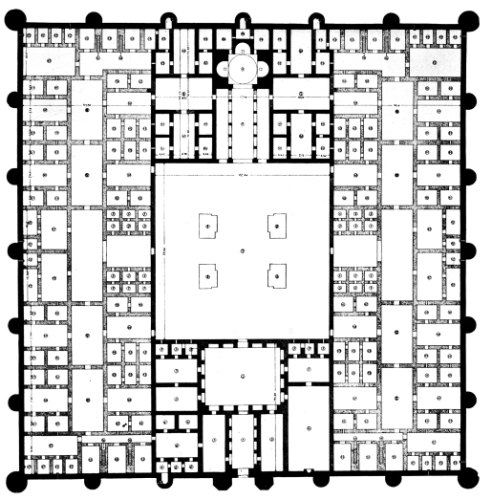 It must be confessed that the question admits of no very striking rejoinder. The Mohammadan invaders were essentially nomadic; their dwelling was the black tent, their grave the desert sands. The inhabitants of the rare oases of western and central Arabia were content, as they are to-day, with a rude architecture of sun-dried brick and palm-trunks, unadorned by any intricate device of the imagination, and unsuited to any but the simplest needs. Even the great national shrine at Mekkah, the sacred house of the Ka’bah, was innocent of subsidiary constructions. It is true that on the northern trade-route the rock-cut tombs of Madâin Ṣâliḥ and of Petra bear witness to a higher order of artistic impulse, but it was an impulse which borrowed its power from without, from Hellenized Egypt and from Hellenized Syria. If there were an indigenous Arabian architecture worthy of the name, it can only have existed in the southern limits of the peninsula, where as yet exploration has been too imperfect to afford data for argument, nor is there evidence to show that in the seventh century of our era it can have played a part in the development of the northern tribes. Upon the northern frontiers the influence of the Byzantine and of the Sasanian empires would seem to have been predominant, and when the invaders established themselves in provinces which had been ruled from Constantinople or from Ctesiphon, they employed Greek and Persian artificers to fulfil their newly developed requirements and to satisfy their newly developed taste for architectural magnificence. The palaces of the conquerors were planned, constructed, and adorned by those whom they had conquered; their learning and their civilization were borrowed from them; even the ritual of their faith was shaped{viii} by contact with older forms of worship. No more significant example of the debt which Islâm owes to alien races can be cited than that which is afforded by the history of the mosque. Out of the mud-built courtyard of the Arab house, the open space for domestic and tribal assembly, Greek and Persian builders created an architectural type which governed the whole Mohammadan world. And the only contribution of the masters for whom they worked was the demand for just such large and open spaces, easily accessible, oriented in a certain manner, and partially shaded from the rays of the sun.