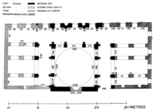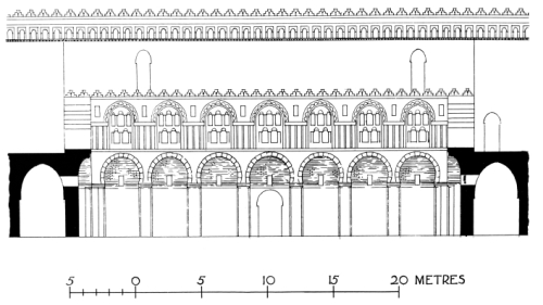 [409] At Ba’albek its width is strongly marked in the façade of the ṣaḥn and in the arcade next to the qiblah wall, not in the intermediate arcades. For plan see Berchem-Strzygowski, Amida, Fig. 271.