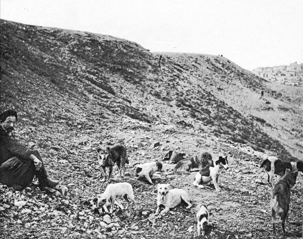 In those coming days another feature of Constantinopolitan life will also have disappeared, which is now one of the most curious of her curiosities—the dogs. And, as this is a subject which really merits attention, I am going to devote some little space to it. Constantinople is one huge dog-kennel; every one can see this for himself as soon as he gets there. The dogs constitute a second population in the city, and, while they are less numerous than the first, they174 are hardly less interesting as a study. Every one knows how the Turks love and protect them, but just why they do so is not so easy to decide. I could not, for my own part, make out whether it is because the Koran recommends all men to be merciful to animals, or because they are supposed, like certain birds, to bring good luck, or because the Prophet loved them, or because they figure in their sacred books, or because, as some insist, when Muhammad the Conqueror made his victorious entry into the city through the breach in the gate of St. Romanus he was accompanied by a following composed principally of dogs. Be this as it may, the fact remains that many Turks leave considerable sums at their death for their maintenance, and when Sultan Abdul-Mejid had them all transported to the island of Marmora the people murmured, so that they were brought back amid public rejoicings, and the government has not attempted to interfere with them since. At the same time, the dog, having been pronounced by the Koran to be an unclean animal, not one out of all the innumerable hordes which infest Constantinople has an owner; any Turk harboring one would consider his house defiled. They are associated together in a great republic of freebooters, without collars or masters or kennels or homes or laws. Their entire lives are passed in the streets. There, scratching out little dens for themselves, they sleep and eat, are born, nourish their175 young, and die; and no one, at least in Stambul, interferes in the smallest degree with their occupations or their repose. They are the masters of the road. With us it is customary for the dogs to withdraw to allow horses and people to pass by. There it is quite different, people, camels, horses, donkeys, and vehicles making sometimes quite a considerable circuit in order not to disturb the dogs: sometimes in one of the most crowded quarters of Stambul four or five of them, curled up fast asleep directly in the middle of the street, will make the entire population turn out for half a day. And in Pera and Galata it is nearly as bad, only there it is done less out of respect for the dogs themselves than for their numbers. Were you to attempt to clear the road, you would have to keep up an uninterrupted series of blows and kicks from the moment you set out until your return. The utmost they will do voluntarily is, when they see a carriage and four coming like the wind down some level street, at the last moment, when there is no possible hope of its turning out and the horses’ hoofs are fairly grazing their backs, they will slowly and unwillingly drag themselves a couple of feet to one side, nicely calculating the least possible distance necessary to save their precious necks. Laziness is the distinguishing quality of the Constantinople dogs. They lie down in the middle of the street, five or six or a dozen of them in a row or group, curled up in such a manner as to look much176 more like heaps of refuse than living animals, and there they will sleep away the entire day, undisturbed by the din and clamor going on about them, and not rain or sun, wind or cold, has the least power to affect them. When it snows, they sleep under the snow; when it rains, they stay on until they are so completely covered with mud that when they finally get up they look like unfinished clay models of dogs, with nothing to indicate eyes, ears, or mouth.