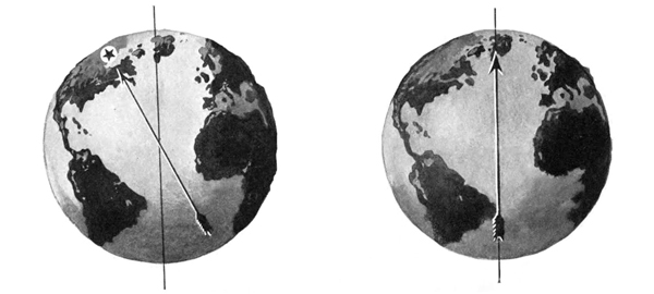 The Sperry Gyro-Compass, which is not a Magnetic Compass, and is not affected by a magnetism of any sort, and derives its directive force from the earth’s rotation, points True North. It does not point to the Magnetic North Pole.