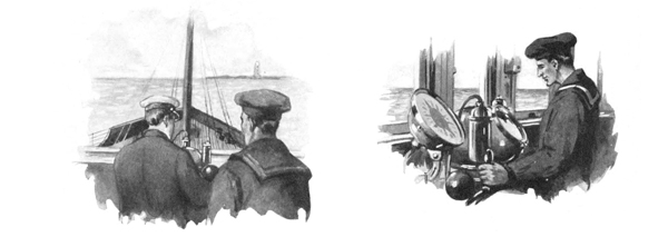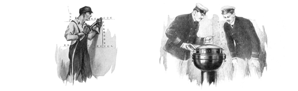 Figure 49 shows a British submarine, a sister ship of the E-11, that entered the Sea of Marmora through the Dardanelles for the purpose of destroying Turkish and German shipping. The E-11 put a torpedo right into Constantinople harbor. The Second Officer of the E-11 in relating this exploit, stated that they steered by the “Sperry” all the way in and out. His remark was that, “It never let me down.”