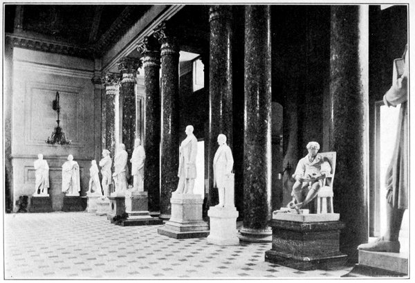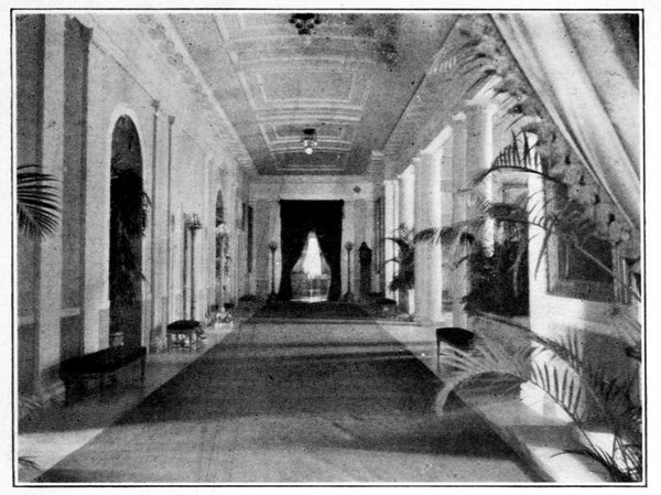 The White House proper contains but thirty-one rooms. The building was refitted and the wings for approach and for the private offices of the President were built during the administration of President Roosevelt. Whether seen through the tracery of leafless trees or through the verdure of summer, the White House always looks cool, restful, and beautiful. The situation is not regarded 167as very healthful, but everything that modern science can do is now being employed to improve its sanitary condition.