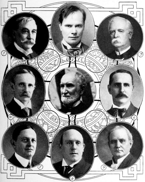 Charles Nagel, of St. Louis, Mo., Secretary of Commerce and Labor (the Arlington), was born August 9, 1849, in Colorado County, Tex. He left his home in 1863 as a result of the civil war, accompanying his father to old Mexico, and from there, by way of New York, to St. Louis. He graduated from the St. Louis High School in 1868; from the St. Louis Law School in 1872; attended the University of Berlin 1872-73; admitted to the bar 1873. In 1876 he married Fannie Brandeis, of Louisville, who died in 1889, one daughter surviving her. In 1895 he married Anne Shepley, and they have four children. He was a member of the Missouri Legislature from 1881 to 1883; president of the St. Louis City Council from 1893 to 1897; member of the St. Louis Law School faculty since 1886; Board of Trustees of Washington University; Board of Directors of St. Louis Museum of Fine Arts. Made national committeeman from Missouri in 1908. Has taken an active part in politics for the last twenty years by participating in conventions and speaking during campaigns, and has from time to time delivered addresses before bar associations and similar organizations upon various topics of public interest.