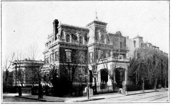 Around Lafayette Square, which faces the White House, history, poetry, romance, and chivalry have twined an immortal wreath. Every monument commemorates a hero. Here, too, is the old private residence of Dolly Madison, the old home of the British Embassy, where Owen Meredith wrote "Lucile"; also the Webster home, where once lived the French Embassy; and St. John's Episcopal Church, where many Presidents have worshiped. Here Webster, Sumner, and Slidell lived at different periods. The old Decatur house stands on this square. The Admiral had a window cut through, so that he could signal the President in the White House. They missed the telephone. On this square lived Diaz, of Mexico; here Don Cameron and Blaine each lived in 183the same house, afterward occupied by Senator Hanna. On the north side is the handsome residence where lived Secretary of State John Hay.