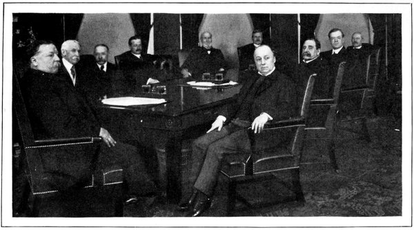 From left to right around the table—President Taft, Franklin MacVeagh, George W. Wickersham, George Von L. Meyer,
