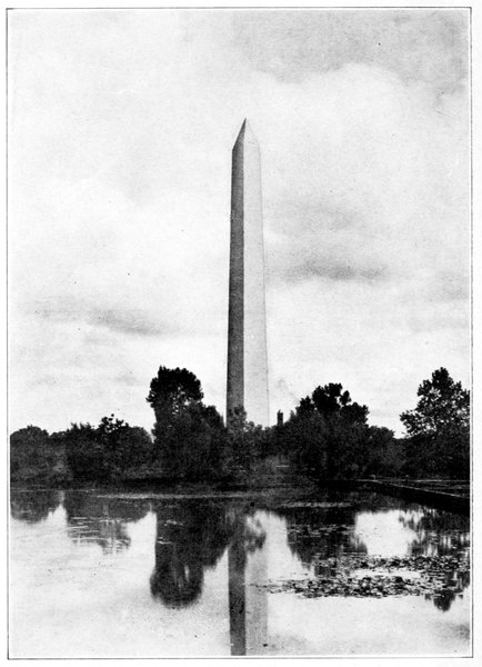 182The Washington monument, nearly six hundred feet high, is said to be the highest monument in the world. It was erected in memory of George Washington. This grand structure is of pure white marble. From the top there is a magnificent view of the surrounding country. The monument, however, has suffered from the disintegrating effects of the weather, and from the ruthless hands of the relic-hunters. The majestic appearance of the monument grows upon the beholder, and its pearly whiteness reminds him of the character of Washington, which grows fairer in the mellowing light of history.