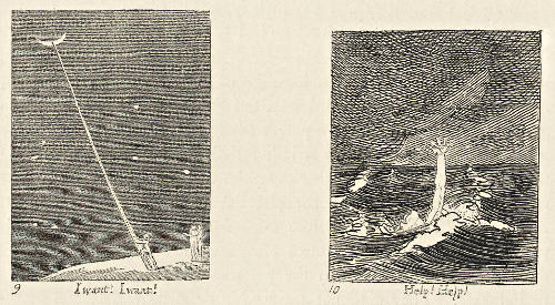 [3] As for example “Man lies by a rock-bound shore, his thoughts flying forth from him in likeness of delicate airy figures driven by the wind to perish in the endless sea as soon as born.” In the absence of the drawings themselves such descriptions affect us like the projects for unwritten stories in Hawthorne’s American Note Book.