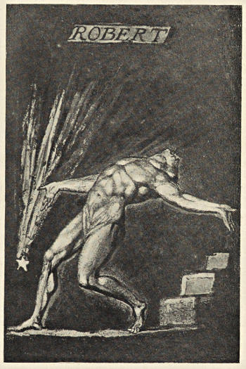 affected Blake with enthusiastic delight. “Felpham,” he wrote to Flaxman, “is a sweet place for study, because it is more spiritual than London. Heaven opens here on all sides her golden gates; her windows are not obstructed by vapours; voices of celestial inhabitants are more distinctly heard, and their forms more distinctly seen, and my cottage is also a shadow of their houses.” He continues: “I am more famed in Heaven for my works than I could well conceive. In my brain are studies and chambers with books and pictures of old, which I wrote and painted in ages of eternity before my mortal life; and those works are the delight and study of archangels. Why then should I be anxious about the riches or fame of mortality?” It is clear that, notwithstanding his theories of the deadness of the material creation, Blake valued natural beauty as an instrument for bringing him into more intimate connection with the visionary world. At first the desired effect was fully produced. Blake began to compose, or rather, according to his own account, to take down from supernatural dictation the Jerusalem, the most important in some respects of his mystical writings. Walking by the shore—the very shore where Cary was afterwards to encounter Coleridge—he habitually met Moses and the Prophets, Homer, Dante, and Milton. “All,” he said, “majestic shadows, gray but luminous, and superior to the common height.” A description so fine, that some may be inclined to deem it something more than a mere fancy. Unfortunately he also fell in with a fairies’ funeral, a stumbling-block to the most resolute faith. By and by, however, the dampness of the cottage proved provocative of rheumatism, and, which was much more disastrous, the mental climate proved unsympathetic. Hayley’s patronage of so strange a creature as he must have thought Blake does him the highest honour. He appears throughout, not only as a very kind man, but, what is less usual in a literary personage,[43] a very patient one. He actually instructed Blake in Greek. His kindness and patience did not, however, render him any the better poet; he was an elegant dilettante at the best, and Blake must have chafed at the obligation under which he felt himself to illustrate his verses. One ballad of some merit, however, “Little Tom the Sailor,” inspired Blake with a striking if somewhat rude design, and he adorned Hayley’s library with ideal portraits of illustrious authors. The engraving work which he had to execute for Hayley’s life of Cowper was also little to his taste, but there seems no valid reason to charge him with neglect of it. His own self-reproach, indeed, ran in quite a different channel: he accused himself most seriously of unfaithfulness to his high vocation as a revealer and interpreter of spiritual things. Absence from town led him to write frequently to his friend and patron Butts, and these letters are invaluable indications not only of the frame of his mind at the time, but of its general habit. “I labour,” he says, “incessantly, I accomplish not one-half of what I intend, because my abstract folly hurries me often away while I am at work, carrying me over mountains and valleys, which are not real, into a land of abstraction where spectres of the dead wander. This I endeavour to prevent; I, with my whole might, chain my feet to the world of duty and reality. But in vain! the faster I bind, the lighter is the ballast; for I, so far from being bound down, take the world with me in my flights, and often it seems lighter than a ball of wool rolled by the wind.… If we fear to do the dictates of our angels, and tremble at the tasks set before us, if we refuse to do spiritual acts because of natural fears or natural desires, who can describe the dismal torments of such a state?… Though I have been very unhappy, I am so no longer. I have travelled through perils and darkness not unlike a champion. I have conquered and shall go on conquering. Nothing can withstand the fury of my course among the stars of God and in the abysses of the accuser.” In plain English Hayley strongly advised Blake to give up his mystical poetry and design and devote himself solely to engraving, and Blake looked upon the advice as a suggestion of the adversary. We do not know what Hayley said. If he thought that one of the Poetical Sketches or the Songs of Innocence was worth many pages of Urizen apart from the illustrations,[44] he had reason for what he thought. But Blake’s lyrical gift had all but forsaken him; he was incapable of emitting “wood-notes wild,” and the only way in which he could give literary expression to the inspiration by which he justly deemed himself visited was through his rhythmical form, which to Hayley may well have seemed monstrous. It is highly probable that the pictorial part of Blake’s work found no more favour with Hayley than the poetical; at all events it is very certain that he greatly preferred his engraving, and wished Blake to follow the art by which he had the best prospect of providing for himself. Johnson and Fuseli, by Blake’s own admission, had given the same advice; and an obscure line in one of his rather undignified and splenetic epigrams against his well-intentioned friend may be interpreted as meaning that Hayley had tried to bring his wife’s influence to bear upon him for this end. In any case he lost temper with Hayley, and wrote to Butts (July, 1803): “Mr. Hayley approves of my designs as little as he does of my poems, and I have been forced to insist on his leaving me in both to my own self-will; for I am determined to be no longer pestered with his genteel ignorance and polite disapprobation. I know myself both poet and painter, and it is not his affected contempt that can move to anything but a more assiduous pursuit of both arts.” Two months afterwards he returned to London, but on better terms with Hayley; partly on account of the latter’s generous conduct i