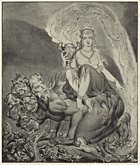The Babylonian Woman on the Seven-headed Beast. From a water-colour drawing by W. Blake. British Museum | 55 |