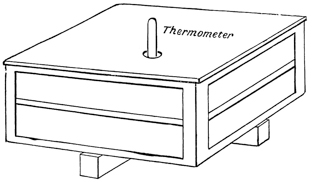 The oven being erected, the first thing to do will be to fill the copper tank with water; then level the slab by means of the screws, or if the bottom ends of the base are shod with sheet iron, wedges may be used to level with. The drying oven must be kept in a room at a uniform temperature of about 60° F.