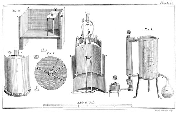 Quelque soin que j'aye pris pour mettre de la clarté & de la méthode dans cette partie de mon travail, & pour n'omettre la description d'aucun appareil essentiel, je suis loin de prétendre que ceux qui veulent prendre des connoissances exactes en Chimie, puissent se dispenser de suivre des cours, de fréquenter les laboratoires & de se familiariser avec les instrumens qu'on y emploie. Nihil est in intellectu quod non prius fuerit in sensu: grande & importante vérité que ne doivent jamais oublier ceux qui apprennent comme ceux qui enseignent, & que le célèbre Rouelle avoit fait tracer en gros caractères dans le lieu le plus apparent de son laboratoire.