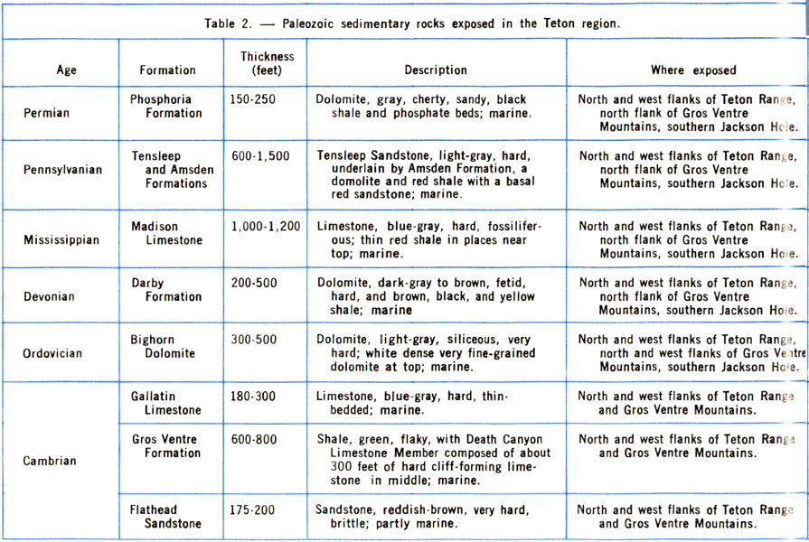 The geologic story of the Teton country from the time the earth was new to the present day has been summarized. What can we learn from it? We become aware that events recorded in the rocks are not a chaotic jumble of random accidents but came in an orderly, logical succession. We see the majestic parade of life evolving from simple to complex types, overcoming all natural disasters, and adapting to ever-changing environments. We can only speculate as to the motivating force that launched this fascinating geologic and biologic venture and what the ultimate goal may be. New facts and new ideas are added to the story each year, but many unknown chapters remain to be studied; these offer an irresistible, continuing challenge to inquisitive minds, strong bodies, and restless, adventurous spirits.