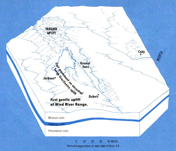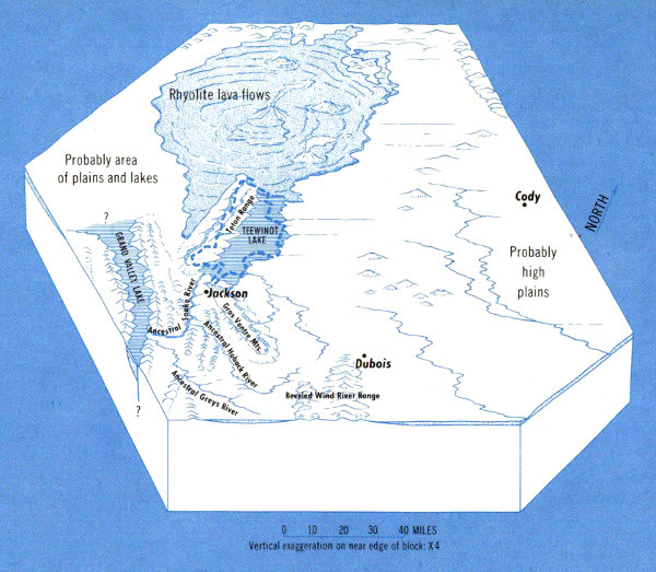 As mentioned earlier, it is probable that the vast outpouring of volcanic rocks during late Tertiary time in the Teton region and to the north and northeast is directly related to the subsidence of Jackson Hole and the rise of the Tetons.