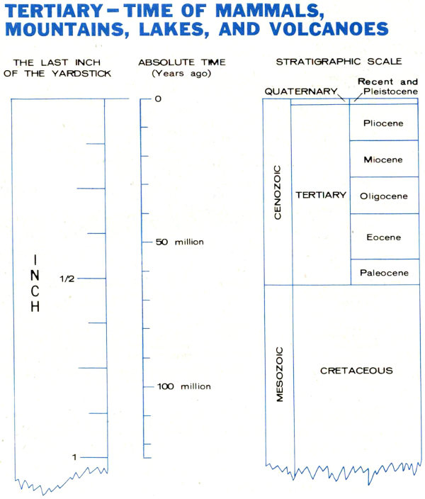Figure 56. The final 3 million years on our yardstick of time, enlarged to show approximate dates of major events.